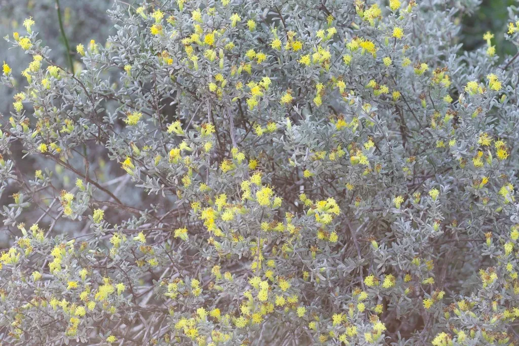 Pteronia incana is a low-growing, aromatic shrub with dusty grey foliage and bright yellow flowers, native to the arid Karoo regions of South Africa.