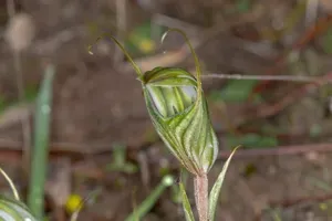 Sharp-leaf Greenhood (Pterostylis Robusta) is a perennial herb in the Orchidaceae family with moderate care difficulty. It requires moderate watering and partial shade or filtered_light light in USDA hardiness zones 9-11. This plant is safe for cats and dogs. It can be grown indoors.