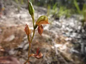Common Ruddyhood (Pterostylis Squamata) is a plant in the Orchidaceae family with moderate care difficulty. It requires moderate watering and moderate light.