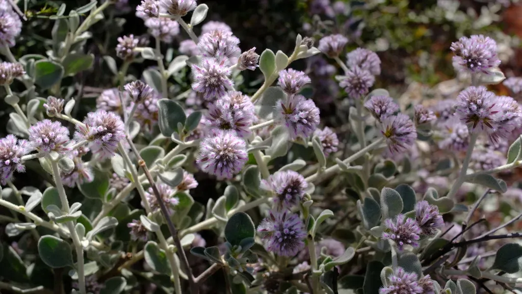 Ptilotus obovatus is a shrub native to arid Australia, known for its dense clusters of pink flowers and softly hairy foliage.
