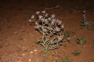 Ptilotus sessilifolius is a shrubby perennial plant reaching up to 1 meter in height, characterized by densely hairy stems and obovate or elliptic leaves.