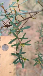 Pultenaea flexilis is an erect shrub endemic to eastern Australia, growing up to 4 meters tall with linear to narrow egg-shaped leaves and yellow to orange flowers with red markings.