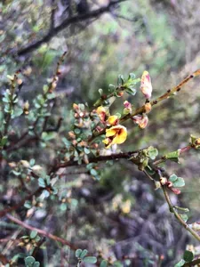 Pultenaea largiflorens is an erect, rigid shrub native to southeastern Australia, known for its narrow leaves and small yellow flowers.
