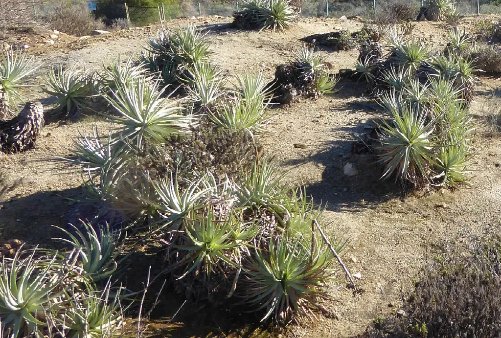 Puya chilensis is a species of terrestrial bromeliad native to central Chile, known for its spiny, leathery leaves and tall flower spikes.