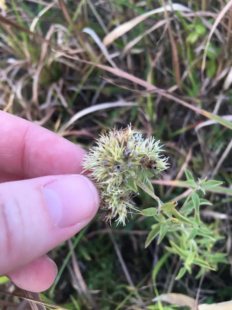 Pycnanthemum flexuosum is a perennial aromatic wildflower known for its fragrant mint-scented foliage and dense clusters of fuzzy white to pale lavender flowers.