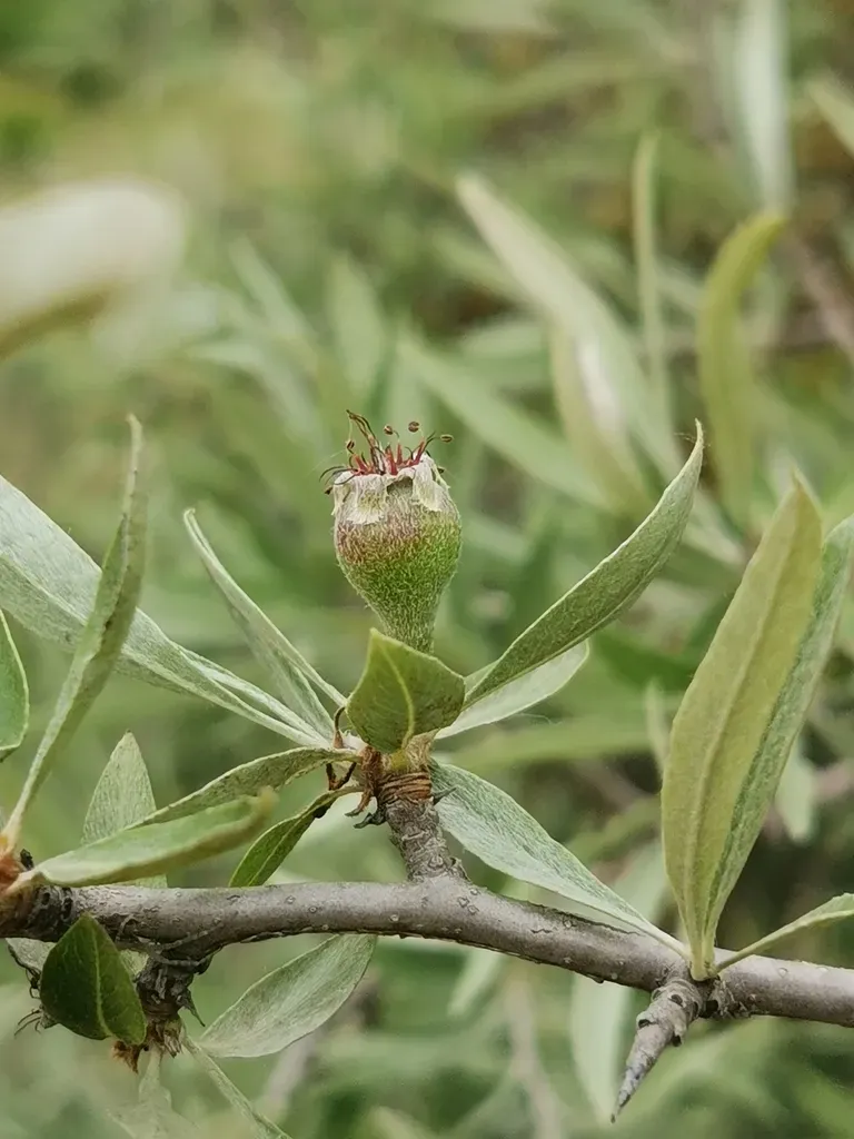 Pyrus salicifolia is a small deciduous tree known for its slender, weeping branches and narrow, silvery-grey willow-like leaves.
