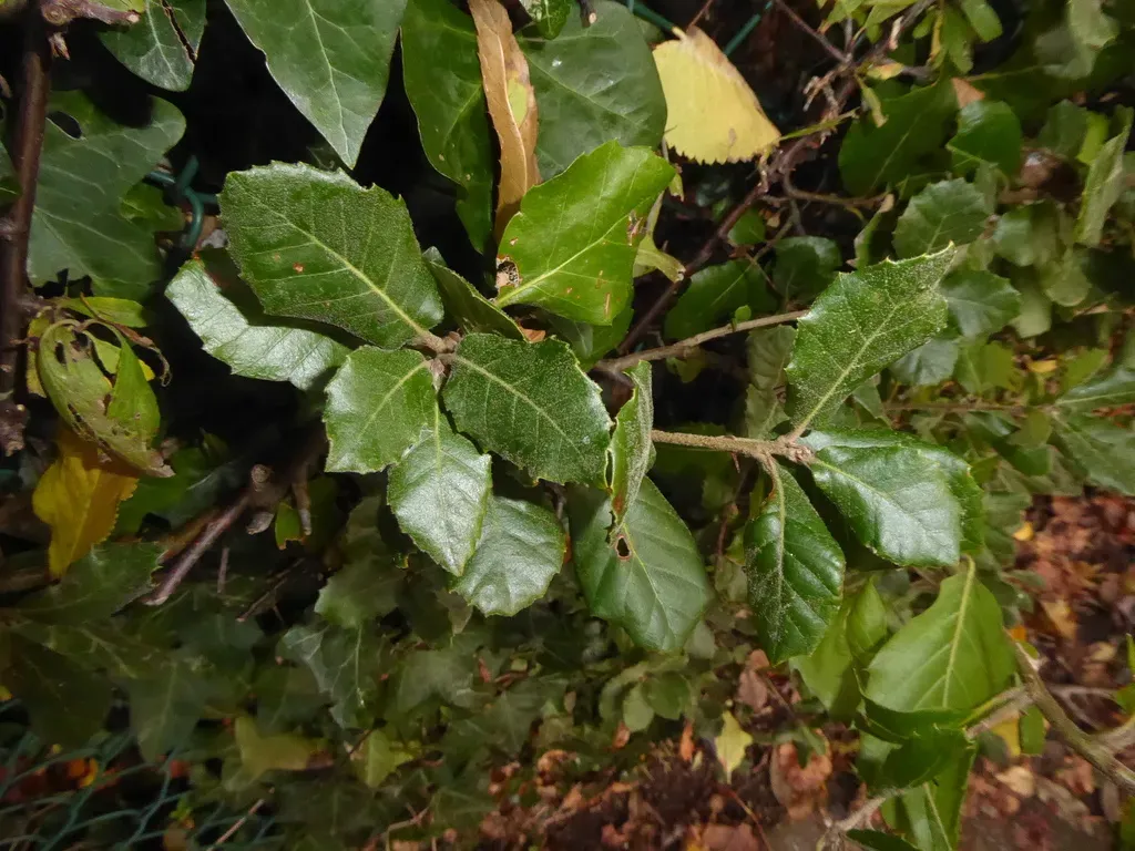 Quercus ilex, commonly known as Holm Oak, is a large evergreen oak native to the Mediterranean region, recognized for its dense, domed canopy and leathery, dark green foliage.