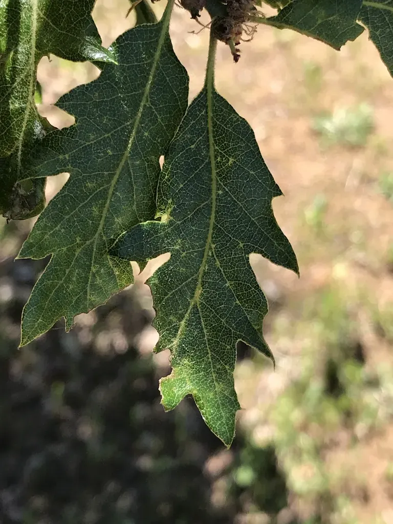 A large deciduous tree native to western North America, known for its deeply lobed leaves and dark bark.