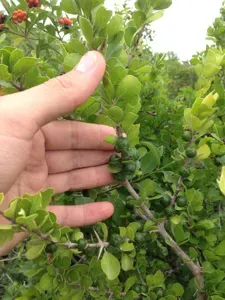 Indigoberry (Randia Obcordata) is a perennial shrub in the Rubiaceae family with moderate care difficulty. It requires moderate watering and full sun or partial shade light in USDA hardiness zones 9-11. This plant is safe for cats and dogs.