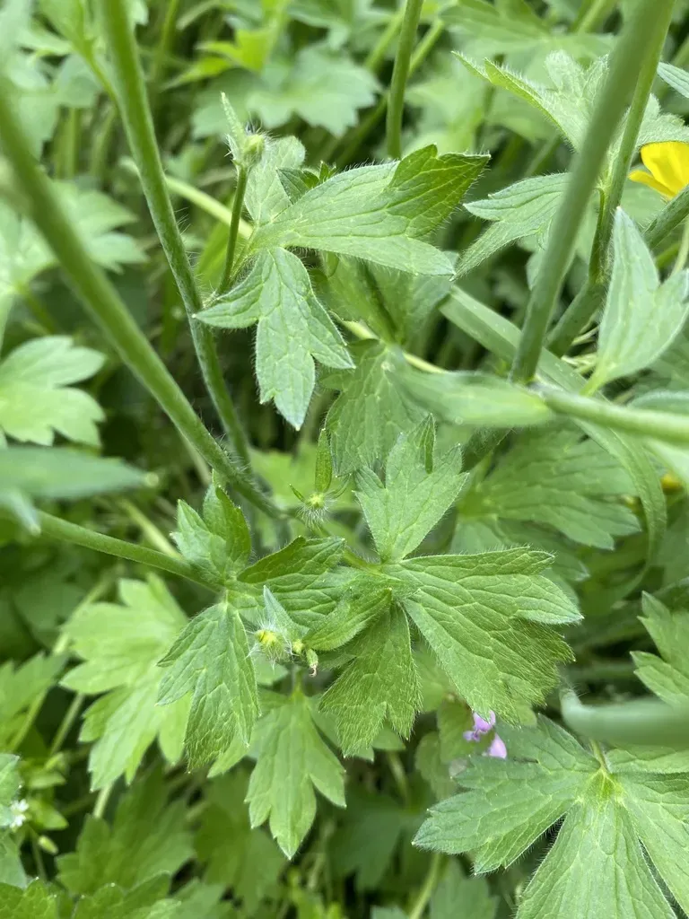 Ranunculus constantinopolitanus 'Plenus' is a clump-forming perennial with bright yellow double flowers and deeply lobed dark green leaves.