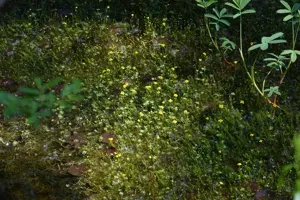 Ranunculus gmelinii is a perennial herbaceous plant commonly found in moist or aquatic environments, characterized by its small yellow flowers and prostrate or floating stems.