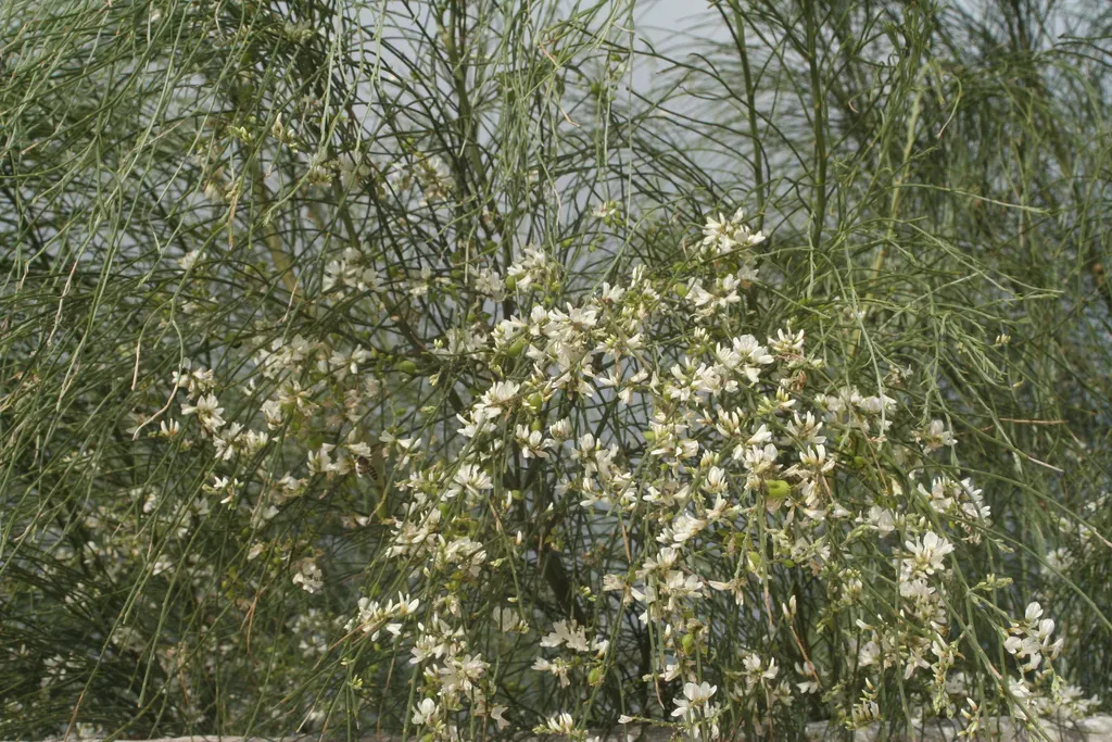 Retama monosperma is a flowering shrub species native to the Mediterranean Basin, known for its fragrant white flowers and nearly leafless, gray-green stems.