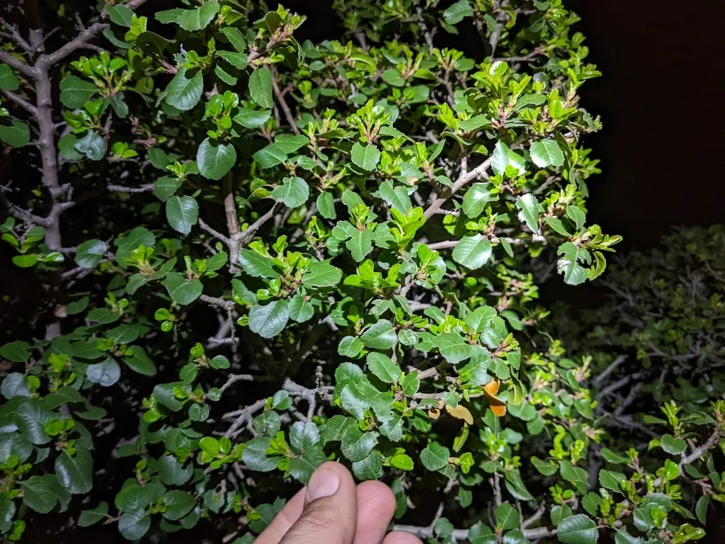 Hollyleaf Redberry (Rhamnus Ilicifolia) is a perennial shrub in the Rhamnaceae family with easy care difficulty. It requires drought-tolerant watering and full sun or partial shade light in USDA hardiness zones 8-10. This plant is toxic to cats and dogs — keep it out of reach of pets.