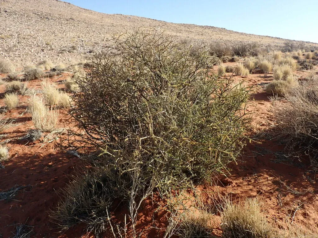 Rhigozum trichotomum is a woody perennial shrub native to southern Africa, characterized by thorny twigs often branching in threes and small leaves that are shed during the dry season.
