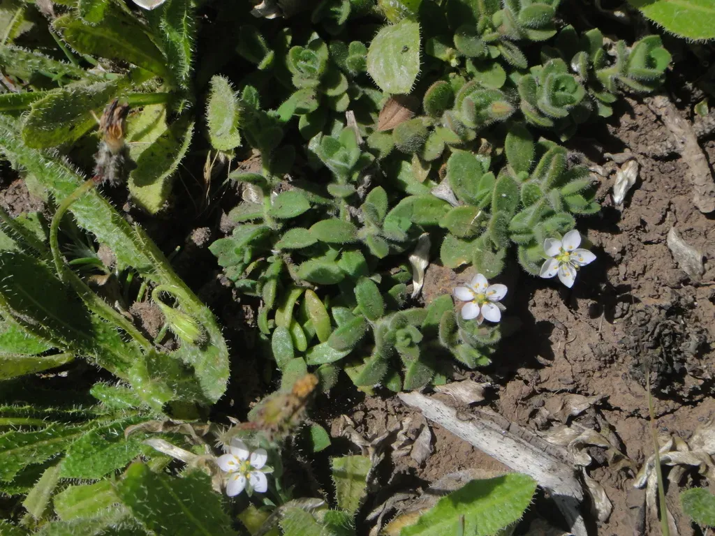 Woody Sandwort (Rhodalsine Geniculata) is a perennial herb in the Caryophyllaceae family with moderate care difficulty. It requires low watering and full sun or partial shade light in USDA hardiness zones 8-11. This plant is safe for cats and dogs.