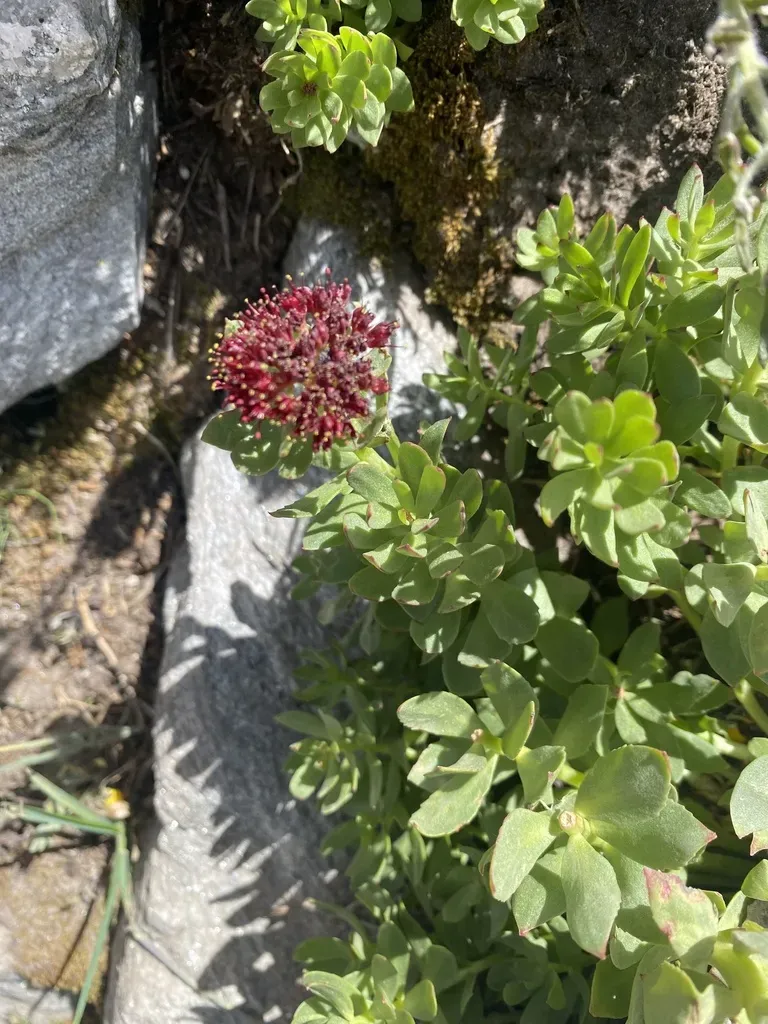 Rhodiola integrifolia is a perennial succulent herb with blue-green rounded leaves and red clustered flowers, native to subalpine and alpine mountainous habitats.