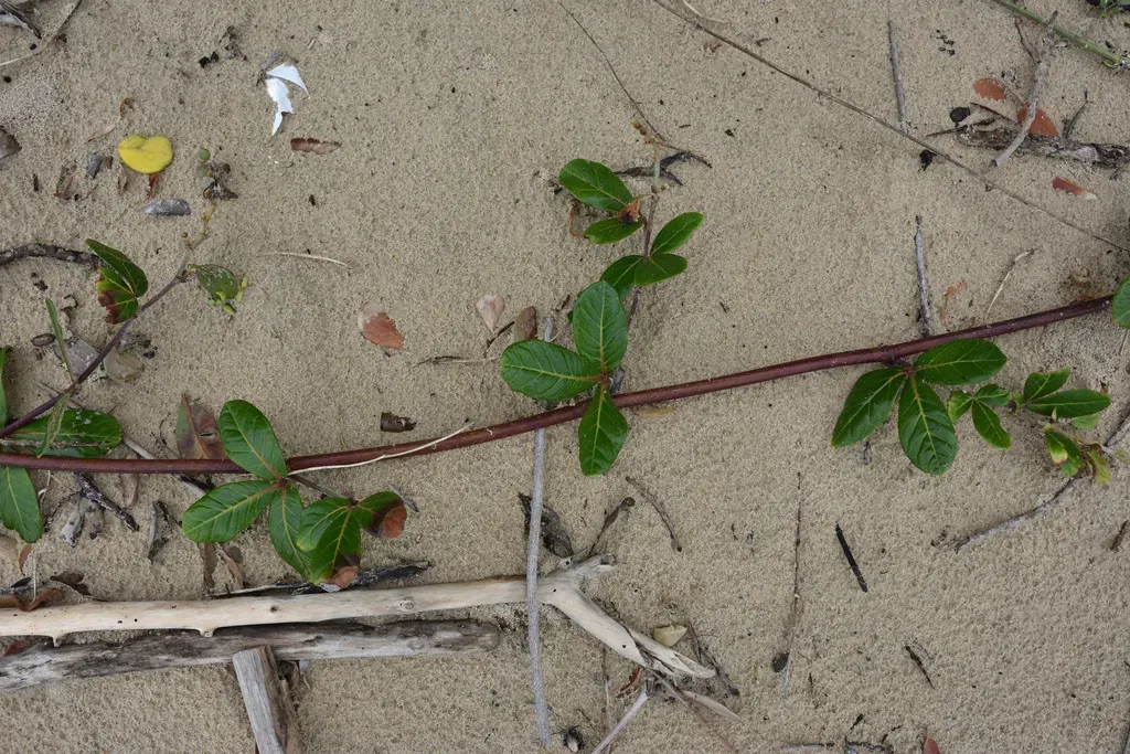 Rhoicissus digitata is a vigorous, evergreen woody climber native to southern Africa, known for its glossy, compound leaves and small, edible grape-like fruits.