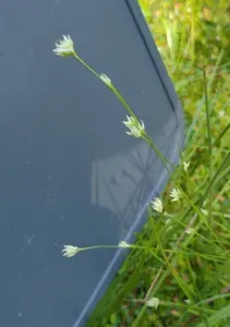 Rhynchospora alba is a perennial sedge native to acidic wetlands such as peatlands, bogs, and fens, often forming colonies on floating mats.