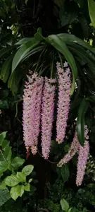Foxtail Orchid (Rhynchostylis Retusa) is a perennial herb in the Orchidaceae family with moderate care difficulty. It requires high watering and partial shade or filtered_light light in USDA hardiness zones 10-12. This plant is safe for cats and dogs. It can be grown indoors.