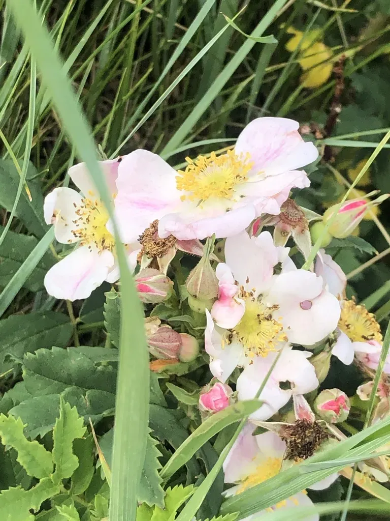 Rosa arkansana is a low-growing, hardy perennial shrub native to North America, recognized for its clusters of pink to deep rose flowers and prickly stems.