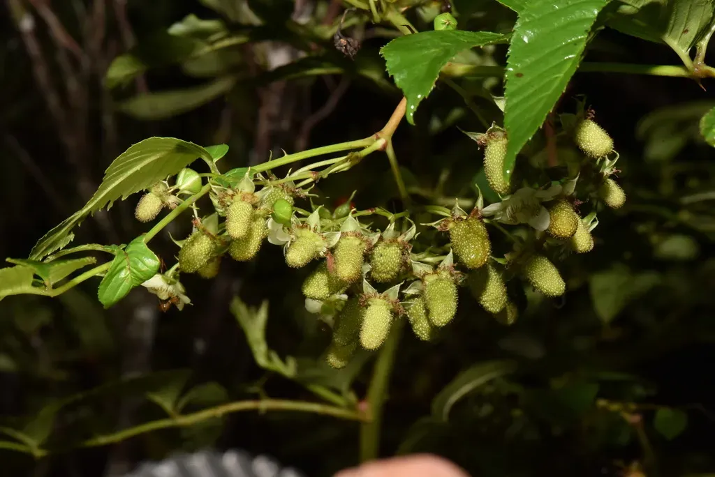 Mountain Raspberry (Rubus Fraxinifolius) is a perennial shrub in the Rosaceae family with moderate care difficulty. It requires moderate watering and full sun or partial shade light in USDA hardiness zones 9-11. This plant is safe for cats and dogs.