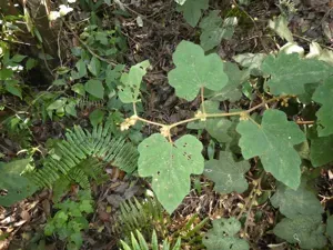 Rubus reflexus is a climbing shrub native to South China, known for its prickly stems, simple palmately lobed leaves, and white flowers.