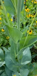 Rudbeckia maxima is a tall, perennial plant known for its large basal leaves and striking yellow flowers with dark brown centers.