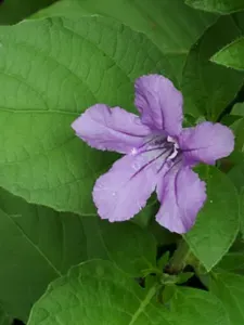 Ruellia drummondiana is a perennial flowering plant native to Texas, known for its trumpet-shaped purple flowers and dark green foliage.