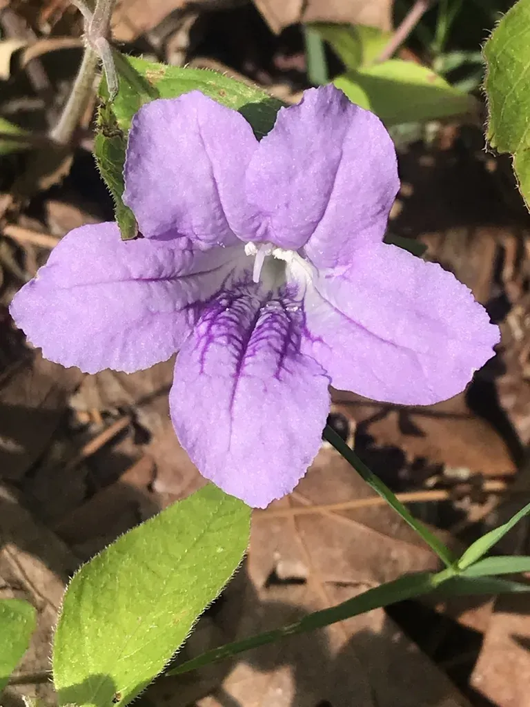 Stalked Wild Petunia (Ruellia Pedunculata) is a perennial herb in the Acanthaceae family with easy care difficulty. It requires moderate watering and full sun or partial shade light in USDA hardiness zones 6-9. This plant is safe for cats and dogs.