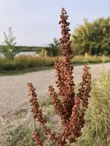 Rumex stenophyllus, commonly known as Narrowleaf Dock, is a perennial herb native to Eurasia, often found in moist to wet habitats such as shores, stream banks, and swamps.