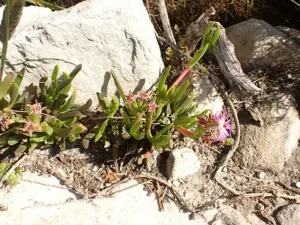 Ruschia sarmentosa is a succulent subshrub native to the southwestern Cape Province of South Africa, known for its evergreen foliage and small size.
