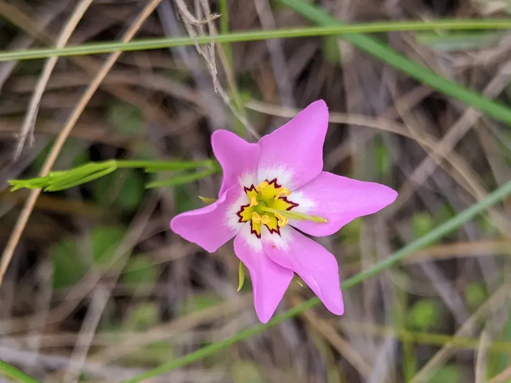 Sabatia stellaris is an annual herbaceous plant known for its striking pink flowers with yellow centers, native to coastal wetlands.