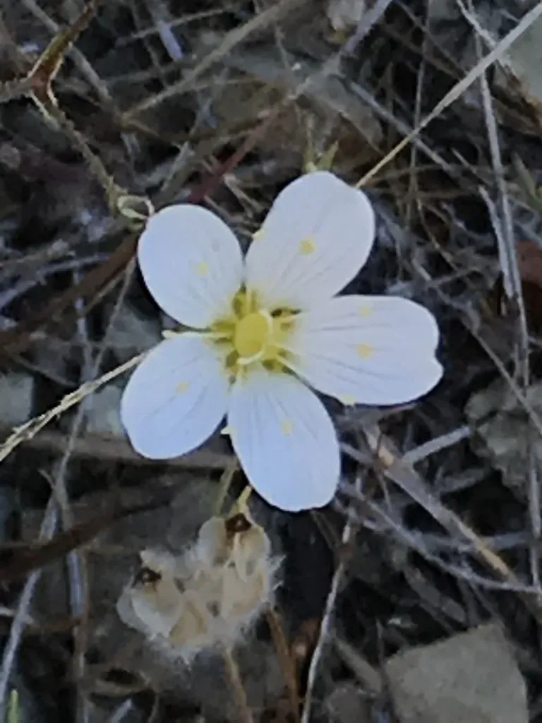 Sabulina douglasii is an annual herb native to California, known for its small size and presence in dry grassy areas and forested slopes.