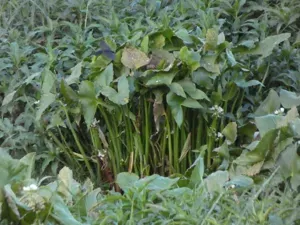 Sagittaria montevidensis is a species of aquatic flowering plant in the water-plantain family Alismataceae, known for its broad arrow-shaped leaves and white flowers.