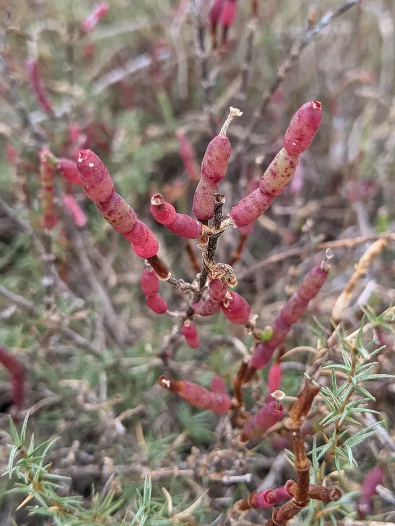 Salicornia bigelovii is an annual, succulent halophyte found in salt marshes, characterized by jointed, fleshy stems and a salt-tolerant nature.