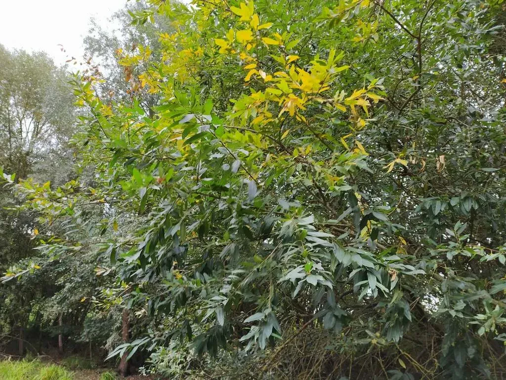 Salix triandra is a deciduous shrub or small tree known for its almond-shaped leaves and yellow catkins.