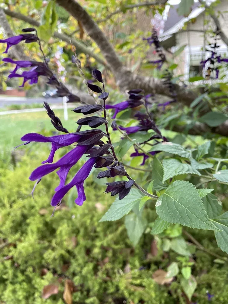 Salvia guaranitica is a perennial herbaceous plant known for its vibrant blue flowers and aromatic foliage.