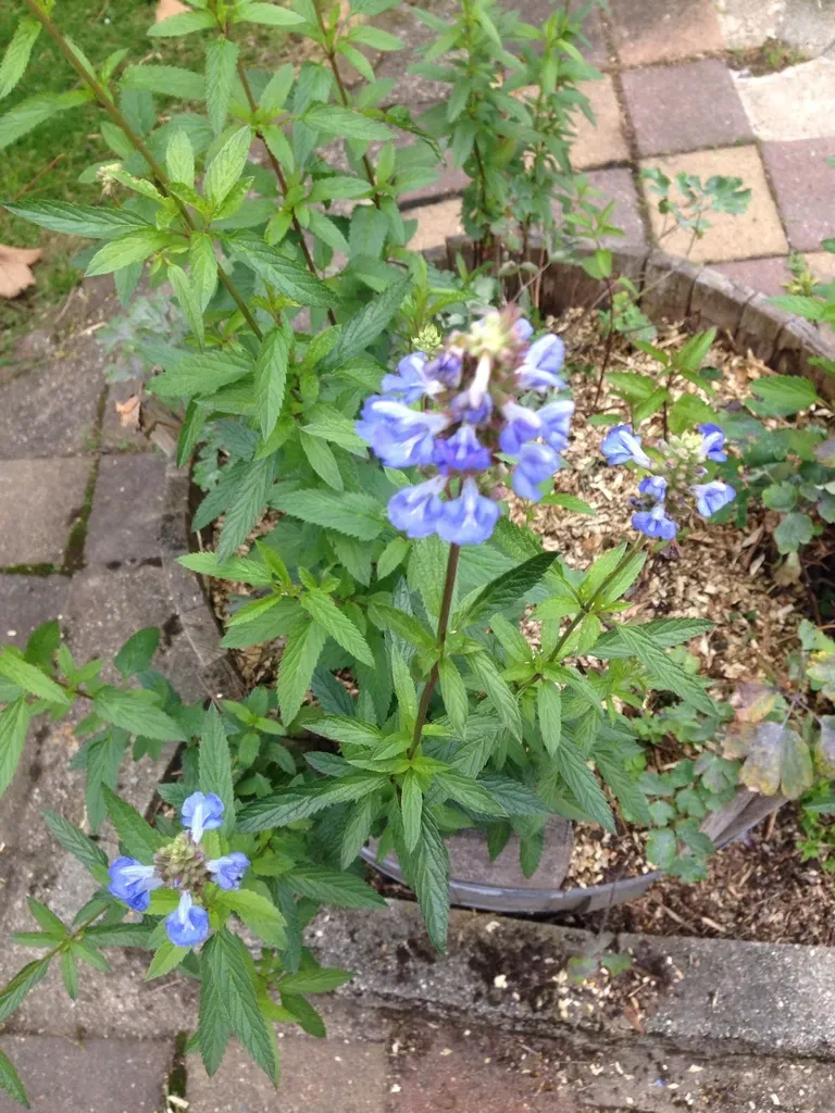 A fast-growing, upright perennial with willowy stems bearing small clusters of deep sky-blue flowers adorned with white throats.