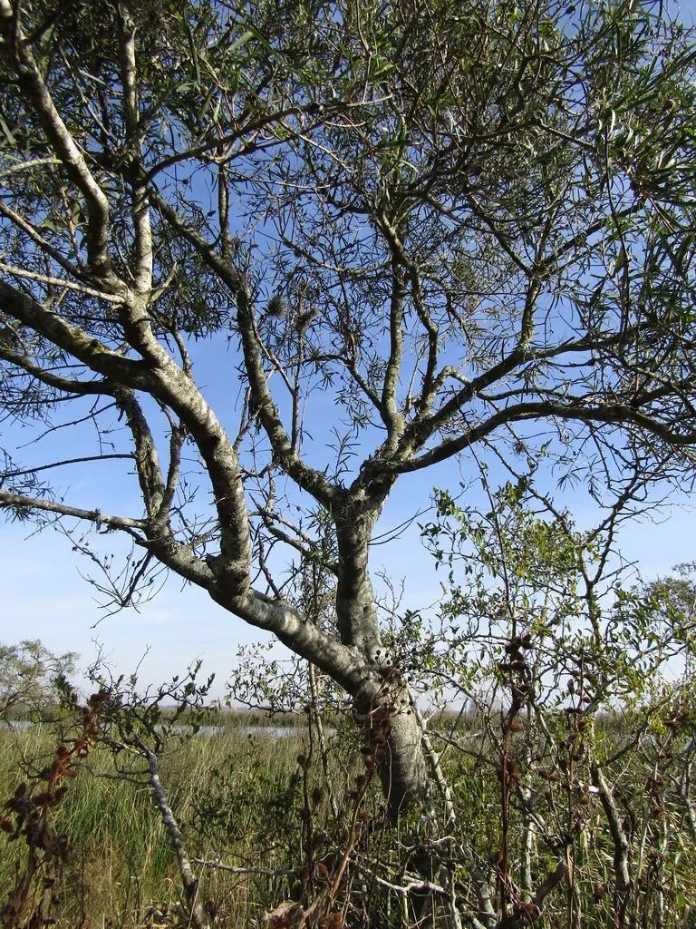 Sapium haematospermum is a semideciduous tree with a low, wide-spreading, globose crown, growing 6 to 12 meters tall.