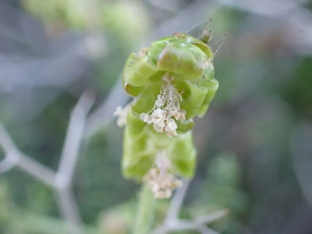 Sarcopoterium spinosum is a perennial thorny shrub native to the Mediterranean region, known for its dense, spiny branches and small inconspicuous flowers.