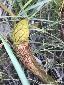 Wrigley's Pitcher Plant (Sarracenia × Wrigleyana) is a plant with moderate care difficulty. It requires moderate watering and moderate light.