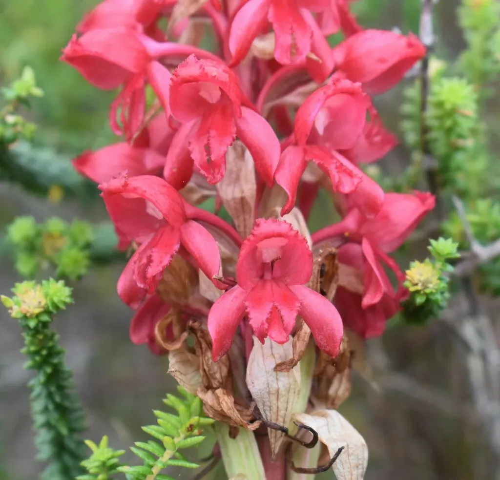 Red Satyre (Satyrium Princeps) is a plant in the Orchidaceae family with moderate care difficulty. It requires moderate watering and moderate light.