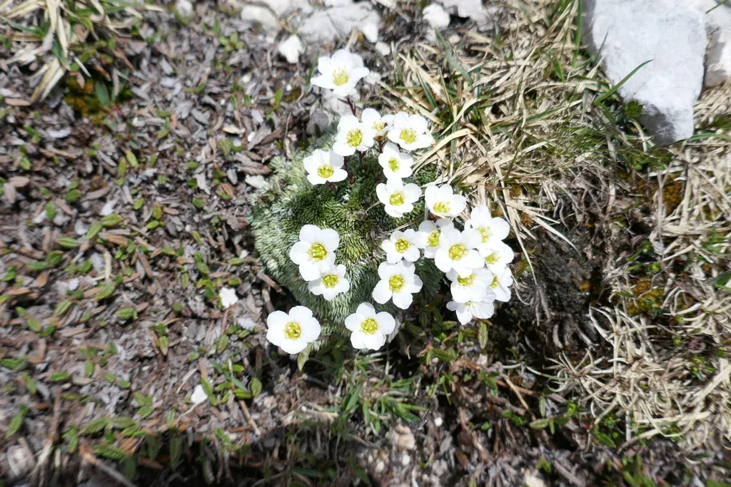 Early White-flowered Saxifrage (Saxifraga Burseriana) is a plant in the Saxifragaceae family with moderate care difficulty. It requires moderate watering and moderate light.