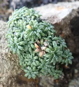 Blue Saxifrage (Saxifraga Caesia) is a perennial herb in the Saxifragaceae family with moderate care difficulty. It requires moderate watering and full sun or partial shade light in USDA hardiness zones 5-8. This plant is safe for cats and dogs.