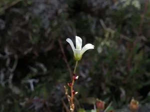 Saxifraga cernua is a perennial herbaceous plant known as nodding saxifrage, characterized by its small stature and nodding white flowers.