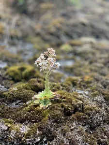 Saxifraga cotyledon is an evergreen, mat-forming perennial known for its toothed leaves and pyramidal clusters of white flowers.