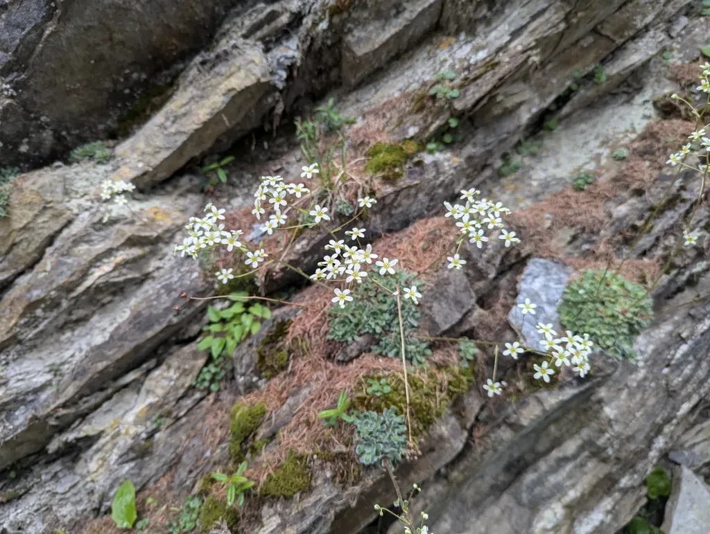 Encrusted Saxifrage (Saxifraga Paniculata) is a perennial herb in the Saxifragaceae family with easy care difficulty. It requires moderate watering and full sun or partial shade light in USDA hardiness zones 3-7. This plant is safe for cats and dogs. It can be grown indoors.