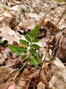 Sceptridium oneidense is a rare fern species within the family Ophioglossaceae, characterized by its blunt-lobed leaflets and preference for moist, acidic woodland habitats.