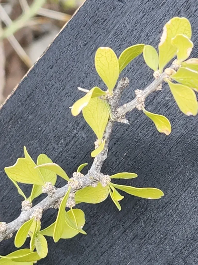 Schaefferia cuneifolia is a perennial evergreen shrub or small tree native to arid and semi-arid regions, known for its smooth grey stems, pale green tear-drop shaped leaves, and small greenish flowers.