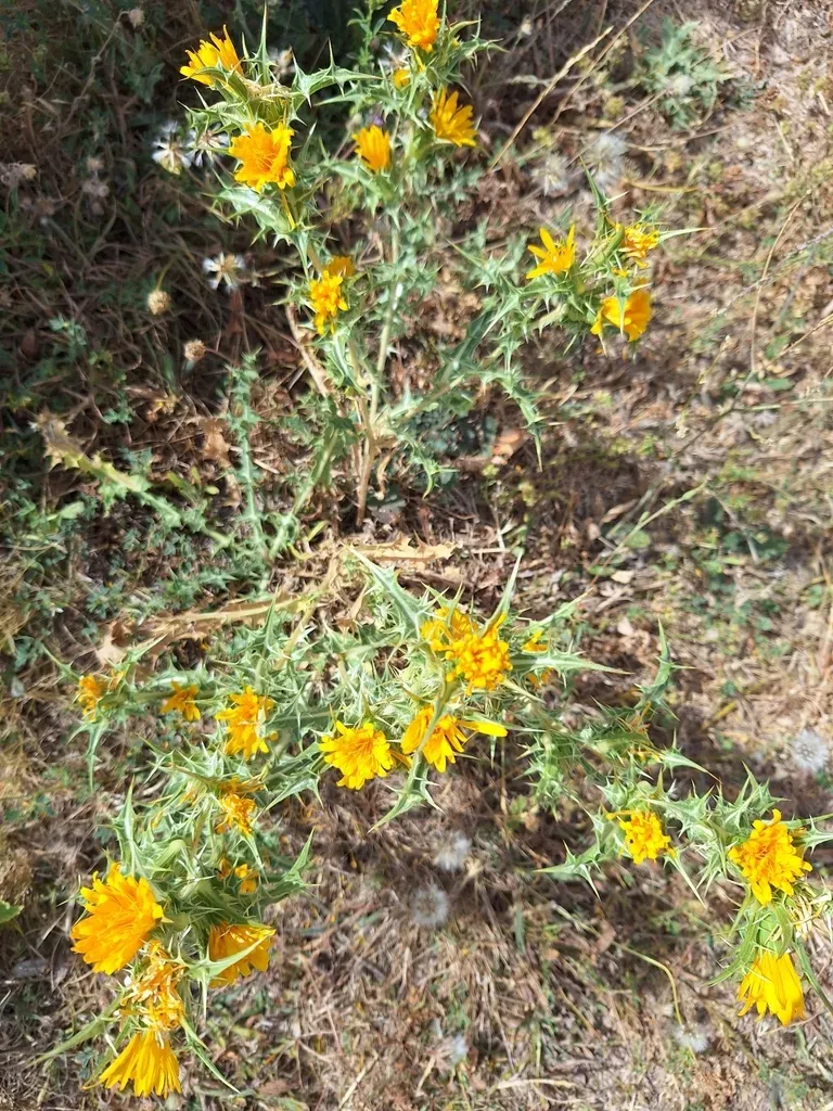 Scolymus hispanicus is a spiny, thistle-like biennial or perennial herb native to the Mediterranean region, known for its yellow, thistle-like flowers and edible taproot.
